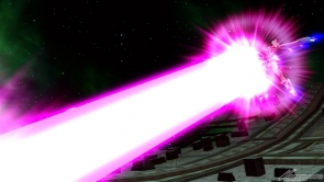 ▲Burst Attack「มาตุภูมิแห่งเหล่าดวงดารา (Milsh Tracer)」ทำการยิงบีมเส้นตรงแล้วคลี่ออกเป็นใบพัด