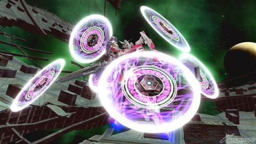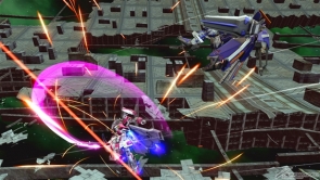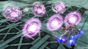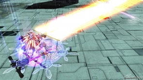 【ขวา】อาวุธปืนเสริม「Sphere Bit」ทำการปา「Sphere Bit」ขึ้น สามารถใช้ Lever ในการควบคุมทิศทางให้ไปปะทะตัวศัตรูう。