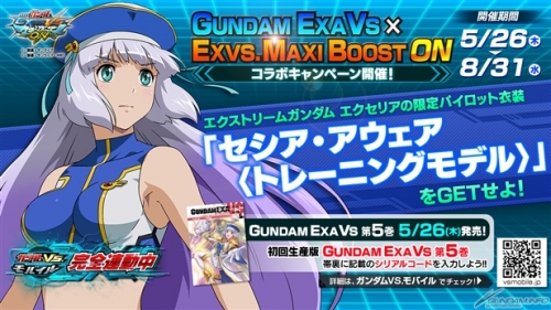 และ 「GundamEXAVS」เล่ม5เองก็จะวางแผงในวันเดียวกันพร้อมSerial Code ไอเทมชุดนักบิน ”เซซิเลีย อาเวีย ”Serial Code มีจำนวนกัดเท่านั้น อย่ารอช้า!