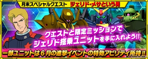 ในอีเว้นท์「ชายนาม เจอริด เมซ่า(ジェリド・メサという男)」ชายนามเจอริด เมซ่าคู่ปรับของ คามิว บิตันจาก『Mobile Suit Gundam Zeta』ปรากฏตัวในอีเว้นท์เควส โดยผู้เล่นต้องทำการปราบเจอริด และเก็บสะสมคะแนนเพื่อรับหุ่นประจำตัวเจอร์ริด