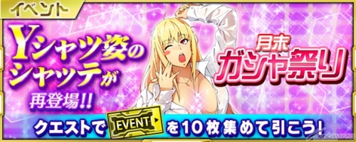 หลังจากผู้เล่นสามารถผ่าน เควส「ชายนาม เจอริด เมซ่า」ได้สำเร็จผู้เล่นสามารถรับคูปองสำหรับอีเว้นท์「เทศกาลกาชาปองสิ้นเดือน」โดยอีเว้นท์นี้ ชัตตี้ในเสื้อคอYสุดเซ็กซี่ได้กลับมาอีกครั้ง รีบสะสมคูปองกันเลย ก่อน วันอังคารที่ 31 พ.ค. นี้ เวลา 15:59 น.