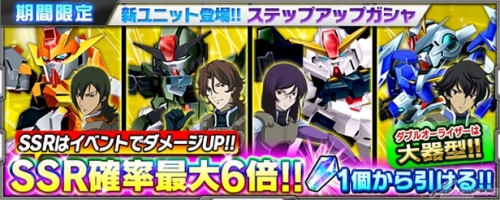 ช่วงที่「Step up Gacha」เปิดอยู่ , เผยโฉมยูนิตใหม่ทั้ง4ตัวจาก『Mobile Suit Gundam 00』Second Season SSRสามารถทำดาเมจศัตรูในอีเวนท์「โลกที่ควรจะเป็น」ได้3เท่า