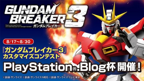 Gundam Breaker 3 เกมยอดนิยมที่วางจำหน่ายอยู่บนเครื่อง PS4/PS Vita โดย Bandai Namco Entertainment , ได้เปิดรับสมัครผู้เข้าแข่งขันในงานประกวด Customize「ชิงถ้วยรางวัลPlayStation®Blog」แล้ว ตั้งแต่วันพุธที่ 17 สิงหาคม เป็นต้นไป