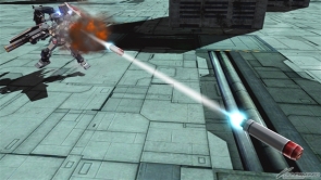 【左】メイン射撃武装「大型ビーム砲」は、大型ビーム砲からビームを発射する。