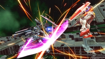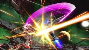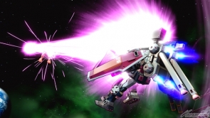 ▲バーストアタック「ケリを…つけてやる!」は、ビーム・サーベルを用いた格闘攻撃後、射撃攻撃を行い、さらに装甲をパージし追撃を行う。