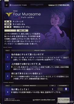 ミッションモードの上級ミッション「キリマンジャロの巨大MA」でボスとして登場した「フォウ・ムラサメ」が、プレイカード用にリメイクされてデジタルカード化。レアリティはSR。