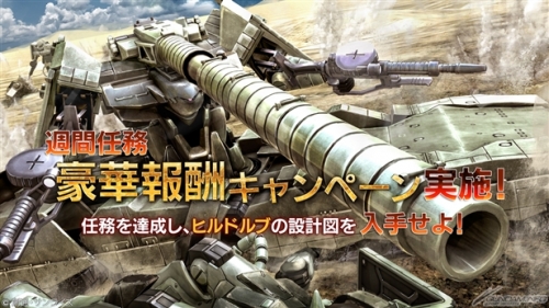 本日14:00より週間任務「豪華報酬キャンペーン」開催。週間任務が2週間に拡大し、キャンペーンポイントが一定数に達するたびに、ヒルドルブの設計図をはじめとする特別な報酬がもれなくプレゼントされる。アップデートで、既存兵装の上位レベル追加、マップ入れ替え、シチュエーションバトル変更。