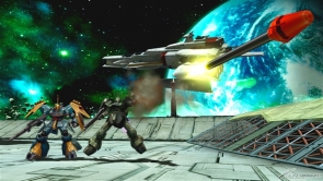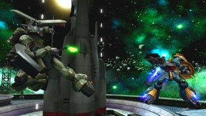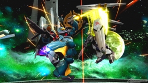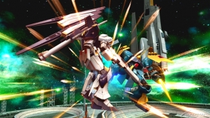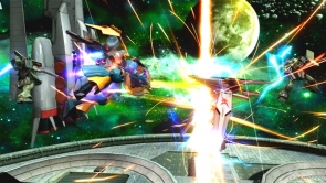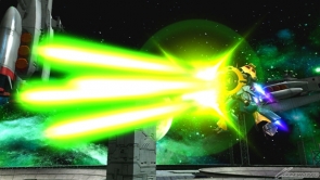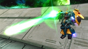 ▲特殊格闘武装「ビーム・サーベル 斬り抜け」は、ビーム・サーベルを用いた突撃攻撃を行う。この攻撃を受けた敵は、一定時間行動不能(スタン)になる。