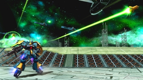 【左】メイン射撃武装「ビーム・アサルトライフル」は、ビーム・アサルトライフルからビームを発射する。