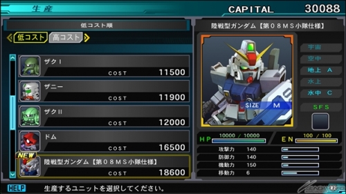 ▲水中用MS(アッガイ)がSFSに乗ることで宇宙でも出撃が可能に。好きな機体が地形適性がなくてもミッションに出撃できる。