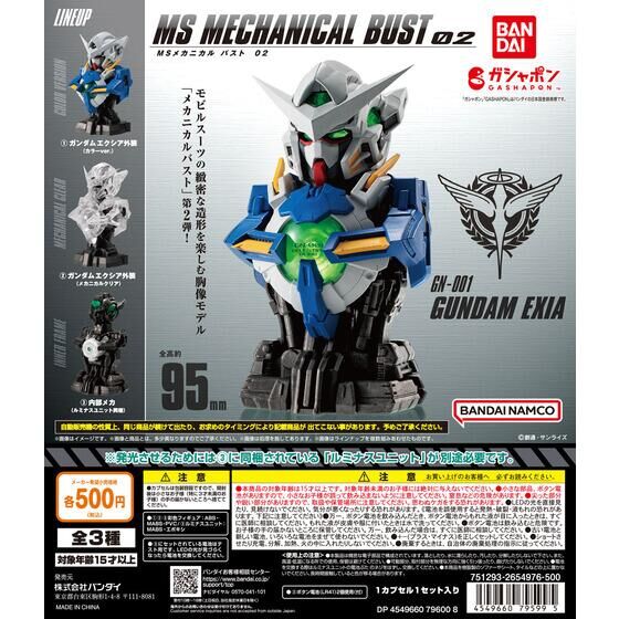 ไอเทมกาชาปอง Mobile Suit Gundam MS Mechanical Bust 02 Gundam Exia จะวางจำหน่ายในสัปดาห์ที่ 4 ของเดือนมีนาคม ราคา 500 เยน (รวมภาษี) ต่อครั้ง
