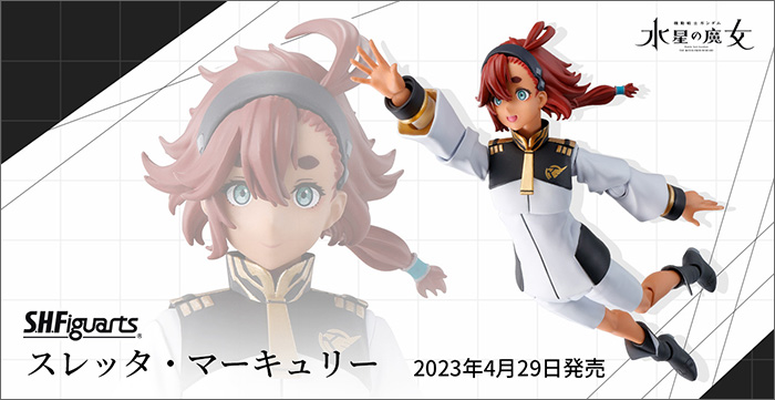 ฟิกเกอร์สำเร็จรูป S.H.Figuarts Suletta Mercury จะวางจำหน่ายในวันเสาร์ที่ 29 เมษายน ในราคา 7,920 เยน (รวมภาษี)
