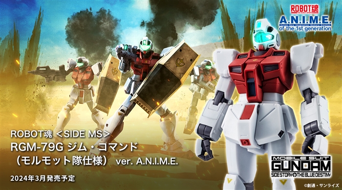 ROBOT SPIRITS GM Command Guinea Pig Team ver. A.N.I.M.E. จะวางจำหน่ายในเดือนมีนาคม 2024 โดยจะจำหน่ายในราคา 8,800 เยน (รวมภาษี)