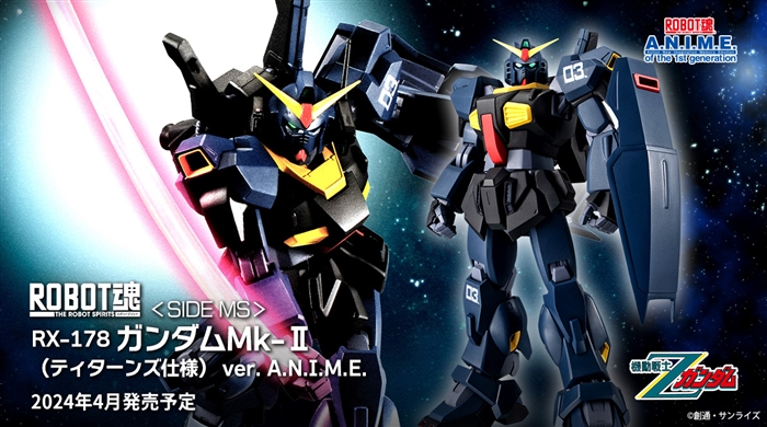 Gundam Mk-II สีดำ ซึ่งเป็นโมบิลสูทที่เป็นตัวแทนของผู้ปกครองหมัดเหล็กแห่งไททัน จะเป็นไอเท็ม Mobile Suit Z Gundam ตัวแรกที่จะเข้าร่วมในซีรีส์ ROBOT SPIRITS ver. A.N.I.M.E.