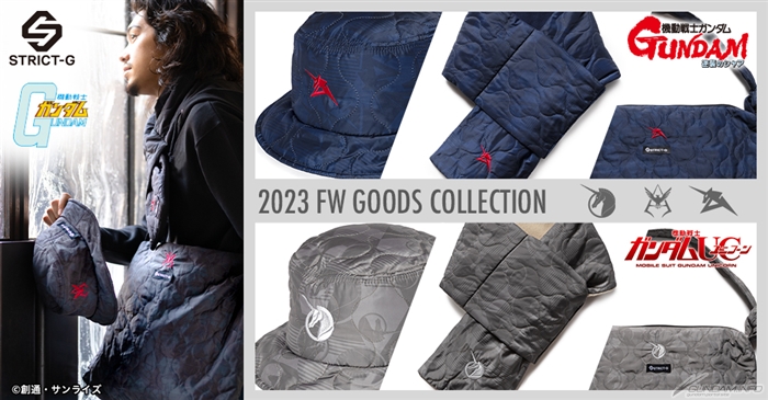 จาก Mobile Suit Gundam, Char’s Counterattack, และ UC กลายมาเป็น ผ้าพันคอ, หมวกบักเก็ต, และกระเป๋าคล้องไหล่ ทำจากวัสดุผ้าบุนวมด้วยแบบกราฟิกดั้งเดิม