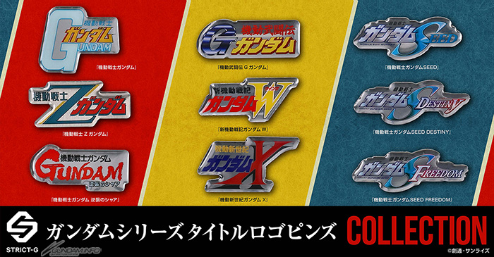 จาก STRICT-G ร้านเครื่องแต่งกายที่รวมเอาโลกของกันดั้ม มาสู่ชุดเข็มกลัดโลโก้ชื่อเรื่องของซีรีส์กันดั้มสามแบบ ราคาชิ้นละ 2,200 เยน (รวมภาษี)