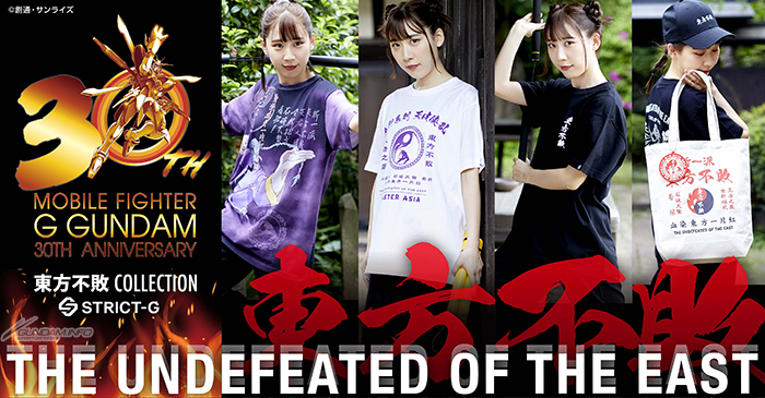 คอลเล็กชันฉลองครบรอบ 30 ปีของ G Gundam นี้ประกอบด้วยสินค้าที่มีแรงบันดาลใจโดย School of the Undefeated of the East and Master Asia ไลน์อัพรวมเสื้อยืดสองแบบ เสื้อยืดสี หมวกปีก กระเป๋าโท้ท แก้วน้ำ และพวงกุญแจแผ่นยางรองแก้วน้ำ