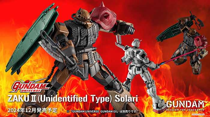 ต่อจาก GUNDAM UNIVERSE GUNDAM EX ที่มีกำหนดวางจำหน่ายในเดือนพฤศจิกายน รายละเอียดที่เป็นเอกลักษณ์ของ ZAKU II (Unidentified Type) ได้รับการสร้างขึ้นใหม่ให้เหมือนจริง โดยสามารถแสดงท่าทางต่างๆ ที่เห็นตลอดทั้งซีรีส์ได้ และมาพร้อมกับอาวุธ เช่น Heat Hawk, Zaku Machine Gun และ Shield ที่สามารถใช้สร้างฉากต่างๆ ได้