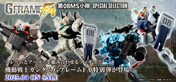 Mobile Suit Gundam G FRAME FA 08th MS Team SPECIAL SELECTION รอบล่าสุดของ G FRAME FA ซีรีส์แอคชั่นฟิกเกอร์สเปกสูงที่พัฒนาโดย Bandai Candy จะวางจำหน่ายในเดือนเมษายน ปี 2025 ในราคาชิ้นละ 748 เยน (รวมภาษี)