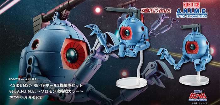 พรีออเดอร์สำหรับ ROBOT SPIRITS Ball Reinforcements Formation Set ver. A.N.I.M.E. ~The Glory of Solomon Color~ จะเริ่มในวันศุกร์ที่ 22 พฤศจิกายน เวลา 16:00 น. JST บนเว็บไซต์ TAMASHII Web Shop ในเครือ Premium Bandai ไอเทมนี้มีกำหนดจัดส่งในเดือนมิถุนายน 2025 และจะวางจำหน่ายในราคา 6,600 เยน (รวมภาษี)