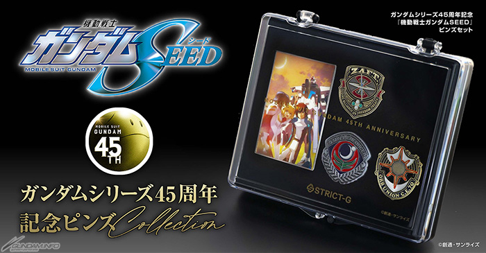 พรีออเดอร์ชุดเข็มกลัด STRICT-G Mobile Suit Gundam SEED Gundam Series ครบรอบ 45 ปี ตั้งแต่วันนี้ วันศุกร์ที่ 6 ธันวาคม ที่ STRICT-G Online Store บน Premium Bandai ในราคา 4,400 เยน (รวมภาษี)