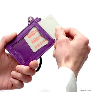 เคสใส่บัตรผ่านแบบเรียบง่ายพร้อมคำว่า 流派東方不敗 (Ryuha Touhou Fuhai/The School of the Undefeated of the East) ประทับด้วยฟอยล์สีเงินและตกแต่งด้วยสีม่วง ซึ่งสามารถใส่บัตรได้ 1 ใบที่ด้านหน้าและอีก 1 ใบที่ด้านหลัง ด้านหนึ่งมีหน้าต่างใส ทำให้สะดวกในการเก็บบัตรผ่านและบัตรประจำตัว ช่องใส่บัตรอีกช่องใช้สำหรับเก็บบัตร IC และสแกนโดยไม่ต้องหยิบออก ปุ่มขอช่วยป้องกันไม่ให้บัตรหล่น และยังมีรีลขยายได้พร้อมตัวอักษร 破 (Ha) ประทับบนส่วนหนัง สายสะพายแบบถอดได้ช่วยให้คุณแขวนกับหูหิ้วของกระเป๋าได้