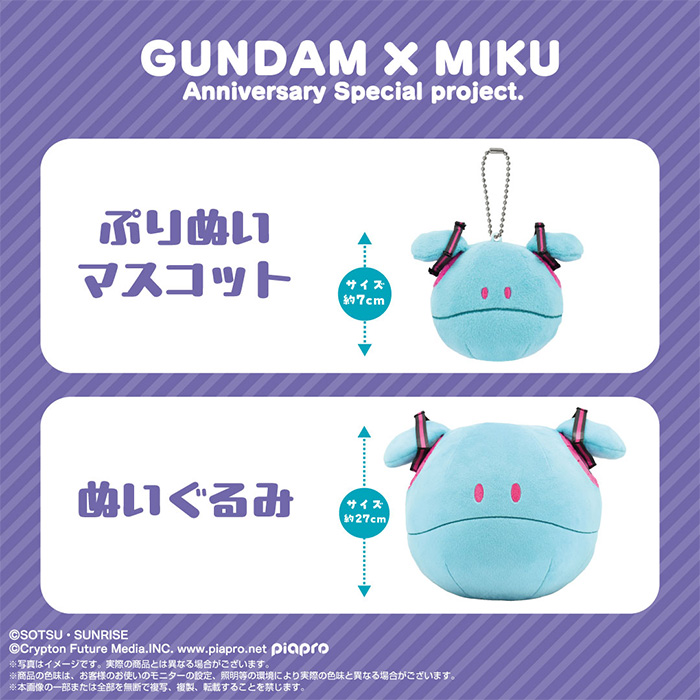 ส่วนหนึ่งของโปรเจ็กต์พิเศษ Gundam 45th Anniversary x Hatsune Miku มาสคอตและตุ๊กตา Miku Haro Purinui มีกำหนดวางจำหน่ายในเดือนสิงหาคม