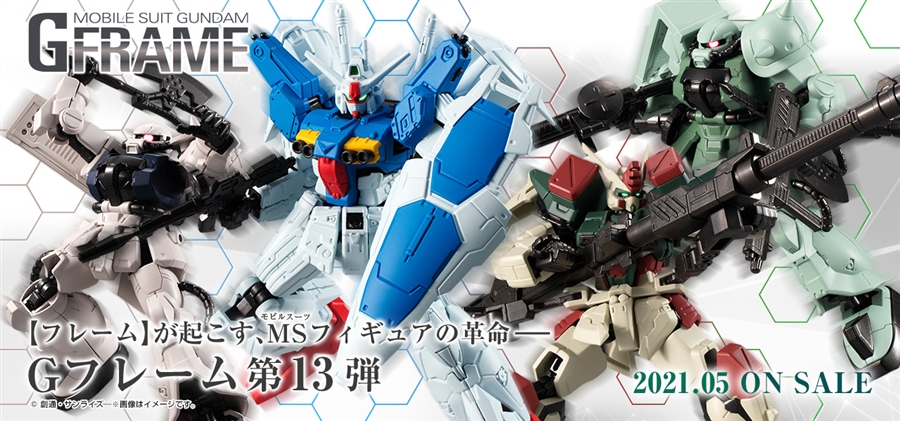 ชุดที่ 13 ของ MOBILE SUIT GUNDAM G FRAME ชุดซีรีย์ของฟิกเกอร์กันดั้มรายละเอียดสูงที่สามารถทำให้สมบูรณ์ด้วยการประกอบเกราะเข้ากับเฟรม จะออกวางจำหน่ายในเดือนพฤษภาคมในราคา 500 เยน (ไม่รวมภาษี)