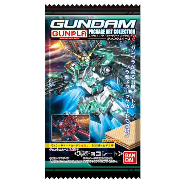 ชุด GUNDAM Gunpla Package Art Collection Chocolate Wafers 7 ไอเทมสะสมซึ่งเปลื่ยนภาพศิลป์อันสวยงามของบรรจุภัณฑ์กันพลาให้มาอยู่ในการ์ดพลาสติก จะออกวางขายแล้ววันนี้ในวันจันทร์ที่ 29 มีนาคม และแต่ละชุดจะขายในราคา 132 เยน (รวมภาษี)