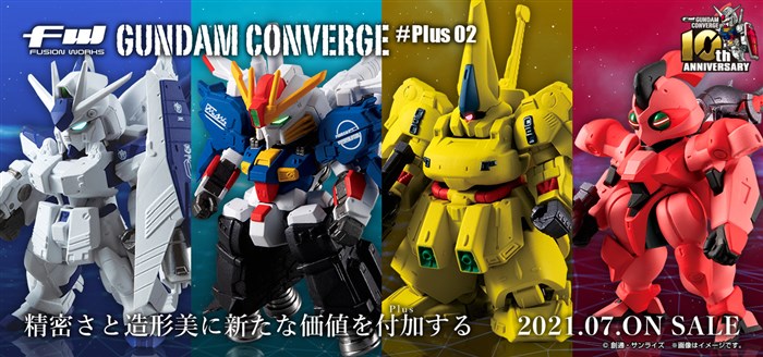รอบที่สองของ FW GUNDAM CONVERGE ♯Plus สินค้าตัวใหม่ในซีรีย์แคนดี้ทอยที่ให้รายละเอียดของชิ้นงานในระดับ “Converge” จะออกวางจำหน่ายในเดือนกรกฎาคม โดยไอเทมแต่ละชิ้นจะวางจำหน่ายในราคา 990 เยน (รวมภาษี)