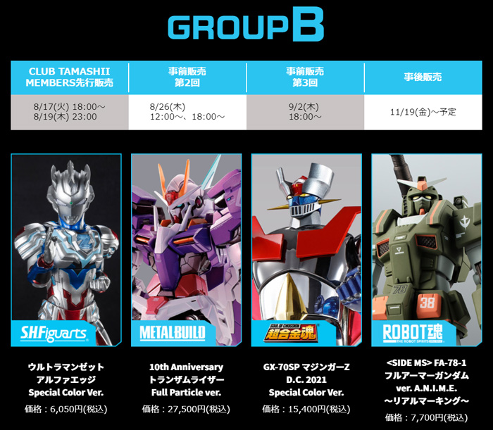วิธีการจำหน่าย: จำกัดให้ สมาชิกระดับ Ocean, Flame, และ Aurora ของ CLUB TAMASHII MEMBERS (รวมถึงสมาชิกที่มีระดับถึงก่อนวันอาทิตย์ ที่ 15 สิงหาคม)