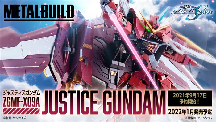 Justice Gundam from the METAL BUILD ซีรีส์ แบรนด์ของเล่นที่มีหุ่นฟิกเกอร์ที่สร้างขข้นจากการผสมผสานจุดแข็งของ Chogokin และออกแบบการจัดการที่เหมาะสมกับแต่ละเรื่อง จะวางจำหน่ายในเดือนมกราคม 2022 ในราคา 28,600 เยน (รวมภาษี)