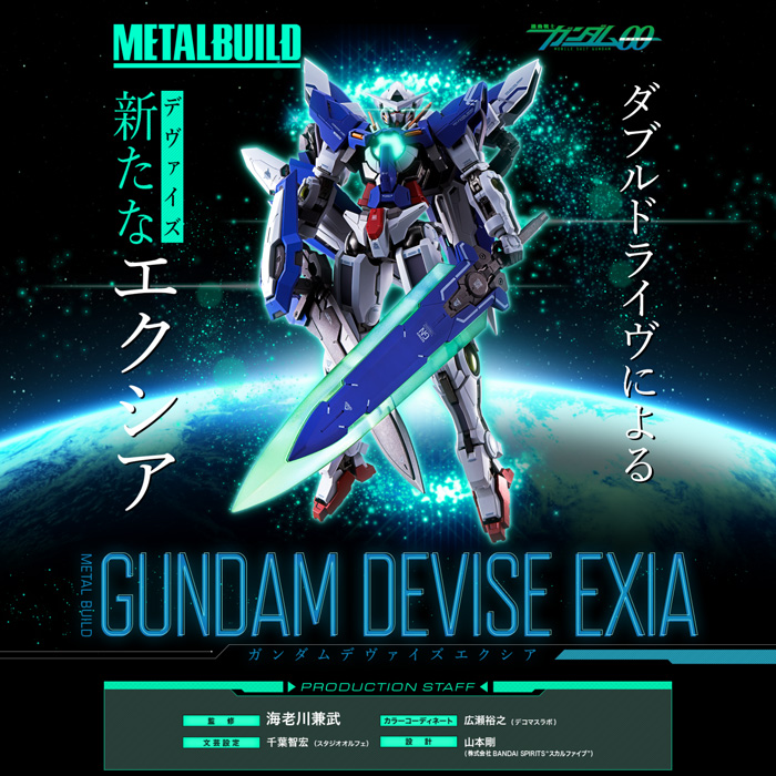 Gundam Devise Exia ที่นำเสนอใน Mobile Suit Gundam 00 Revealed Chronicle โปรเจ็กต์ที่สร้างขึ้นผ่านทางการร่วมมือของ Mobile Suit Gundam 00 และแบรนด์ฟิกเกอร์สำเร็จรูป METAL BUILD ได้วางจำหน่ายในรูปแบบฟิกเกอร์ ซึ่งดูแลโดยนักออกแบบเครื่องกล Mr. Kanetake Ebikawa ผู้ที่ทำงานกับ Mobile Suit Gundam 00, และรวมถึงอุปกรณ์ใหม่ อาทิเช่น Proto GN Luster Sword และ GN Devise Backpack สามสรถติดตั้งได้กับ Gundam Exia-type และฟิกเกอร์ซีรีย์ METAL BUILD อื่นๆที่เข้ากันได้กับ GN Drive