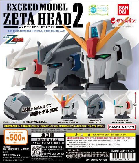ZETA HEAD 2 รอบล่าสุดของซีรีย์ Mobile Suit Gundam EXCEED MODEL ซึ่งมีรายละเอียดโมเดลหัวของโมบิลสูทซึ่งประกอบจากรูปทรงกลม, มาแล้ว จะวางจำหน่ายตั้งแต่สัปดาห์ที่ 3 ของเดือนพฤศจิกายน และสามารถซื้อได้ในราคา 500 เยน (รวมภาษี) ต่อครั้ง