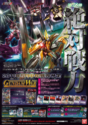We reveal the posters which will arrive soon in your local game shop! Look out for Grandmaster Gundam's imposing presence, Justice Gundam's heroic flight, and Gundam Harute! See a bigger image on the official site!