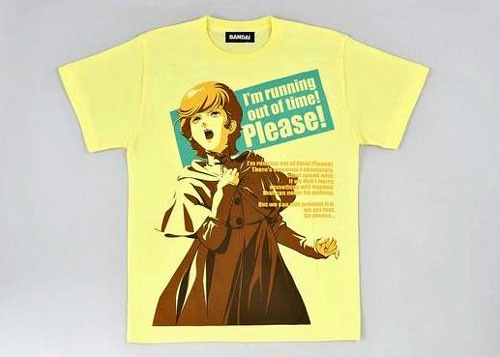 Three shirts are available: the Sinanju print, featuring a print of Full Frontal's favorite suit on the front; the Audrey print, featuring a shot of Audrey from episode 1 plus her line 'I'm running out of time! Please!', and the NT-D print, featuring a brilliant print of the monitor display when Destroy Mode activates!