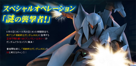 The UE (Unknown Enemy) from Mobile Suit Gundam AGE will invade Gundam Try-Age between September 15th and 28th!