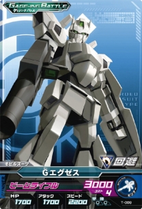 Woolf Enneacle's G-Exes joins the GB series! Play with no fuss using this figure with four Gage-ing Chips built in! Not only does it come with weapons like a beam rifle and a shield, but it includes the Gundam TryAge card T-009 G-Exes!