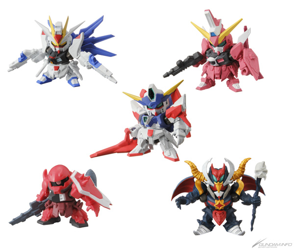 The two lead suits from Gundam SEED Destiny, along with the Gunner ZAKU Warrior, will be included, plus Gundam AGE's AGE-3 Orbital and the Black Dragon from SD Gundam Gaiden!