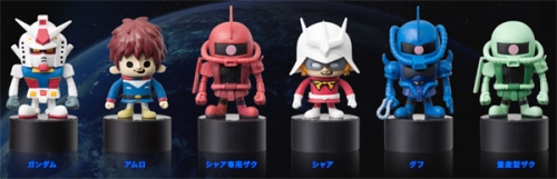 Each 'Gundam Original Figure-tsuki Axe' 90g body spray and 300ml body soap package includes one of six original Gundam figures.