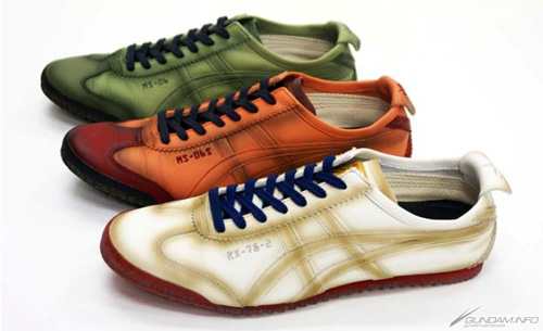 今回のコラボレーションシューズは、“本物の日本”をコンセプトに展開中の「NIPPON MADE」シリーズの定番商品「MEXICO 66 DELUXE」をベースにしており、代表的なMSである「ガンダム」をモチーフとしたトリコロールカラー(ホワイト×ホワイト)、「ザクII」をモチーフとしたカラー(アーミー×アーミー)、「シャア専用ザク」をモチーフとしたカラー(ピンク×ピンク)の3色で展開される。