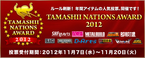 Voting for this year's "Tamashii Nations Award 2012" has started on Bandai's Tamashii Web.