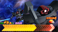 The mobile suit and character cards placed on the panel spring to life on the monitor, ready to attack wherever you move their card in a pitched battle!