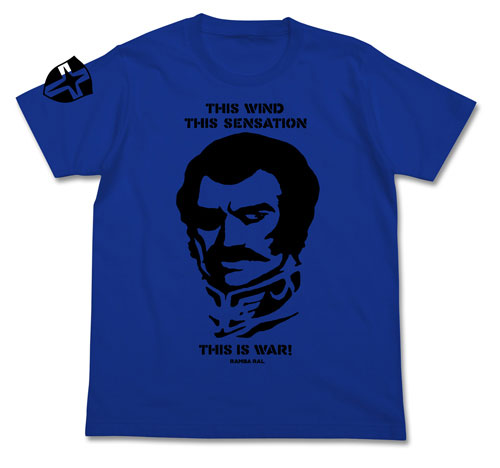 「ランバ・ラルTシャツ」は、ジオン軍の青い巨星「ランバ・ラル」の名台詞「この風、この肌触りこそ戦争よ!」の英訳を前面に、加えてパーソナルマークを袖にプリントした渋すぎる1枚。