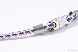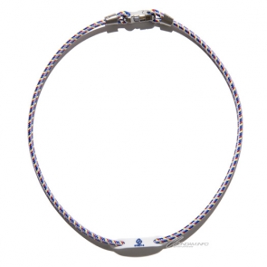 素材:紐部(生地、ポリエステル・アクアチタン約50倍含浸)、中芯(エラストマー・ミクロチタンボール配合)、留め具(ポリアセタール)、目隠し部(純チタン)、ネジ(ステンレス)、付属パーツ(シリコーン)