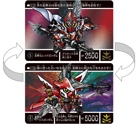 「皇青騎士ガンダム」をめくると 「皇騎士ストライクガンダム」に、「皇騎士レッドガンダム」は 「皇騎士イージスガンダム」になるぞ!