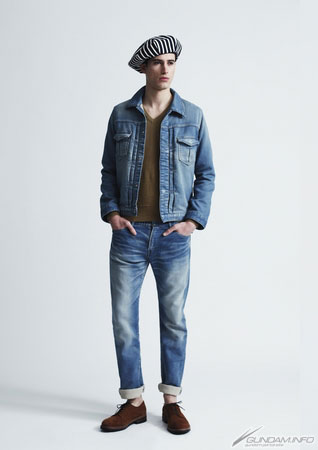 This denim jacket covers the buttons, just like Amuro's. The pants also feature his distinctive back pocket design, and are cut for both comfortable fit and slim silhouette.