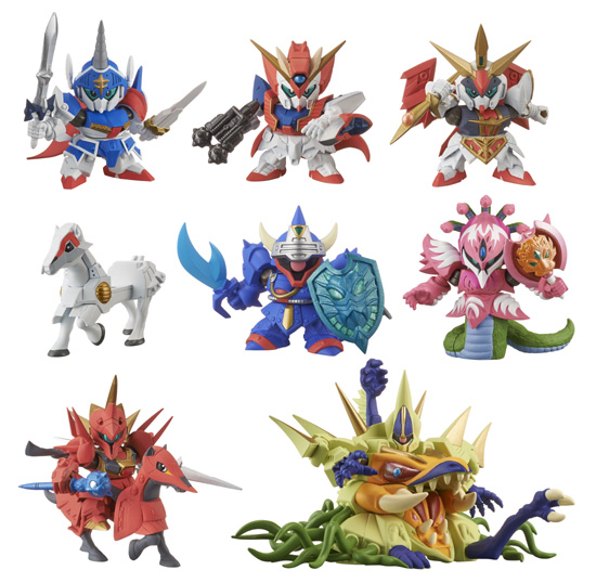 Knight Gundam's Order of Argus, their foes the Zeon Sanmadan, and the Order of Argus arc final boss "Monster Theodante" are here, with Theodante in a 65mm size too big for normal capsules! Don't miss out on all nine figures!