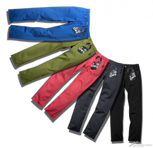 「機動戦士ガンダム」の世界観を取り入れたメンズアパレルショップ「STRICT-G」では、日本を代表するジーンズブランド「EDWIN」とのコラボレーションアイテム第3弾「503カラーパンツ」が4月27日(土)に発売される。