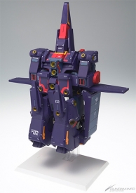 ネオ・ジオン仕様のマーキングは、カトキハジメ氏による新規デザイン。さらに可動式の専用ステージが付属し、MS形態でディスプレイ可能なほか、モビル・フォートレス形態専用支柱も付属する。
